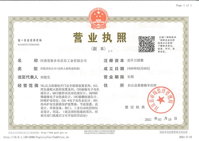 河南省新鄉市啟東工業有限公司始建于1987年,是專注研發、生產自動化儀器儀表(主要與壓力容器、鍋爐等容器配套使用)的廠家。主要產品有液位計(磁敏雙色型、磁翻柱型等)系列、烤包器熄火聯控裝置系列、壓力容器快開門安全聯鎖保護裝置系列、鍋爐報警器系列。二十多年來,公司產品暢銷國內并遠銷俄羅斯、蒙古與東南亞,深得廣大用戶的信賴和好評。我們多年來致力于自動化儀器儀表的研制生產,公司現具有完善的生產、試驗、檢測手段和設備??萍紕撔隆⒄\信服務,是我們不變的經營理念,我們將以強有力的技術支持及售后竭誠為客戶提供良好的服務。  2012年我公司成功研發了KCL系列烤包器熄火聯控裝置,并于2013年2月2日榮獲中華人民共和國國家知識產權局辦法的《實用新型**證書》<**號:2021202257735>該產品廣泛應用于唐鋼等大型鋼鐵企業,為烤包器安全作業提供了有力的保障。  2002年我公司成功研發磁敏電子雙色液位計獨特的高亮度LED紅綠雙色顯示,獲得了專家的首肯和用戶的一致好評。在此基礎上我公司研發人員十年磨一劍,致力于XQFB-1防爆型磁敏雙色液位計的研發,于2013年12月27日由國家防爆電器產品質量監督檢驗中心檢驗合格并頒發防爆合格證書<編號:cnex19.0883>。該產品性能得到了充分的發揮,廣泛應用于含有Ⅱ類A·B級T1-T4組可燃氣體或蒸汽與空氣混合形成的爆炸性混合物的0區、1區危險場所。連接用戶DCS或PLC系統實現遠距離集中顯示和控制,從而實現節能、數字化管理。為用戶增加了一定的經濟效益和社會效益,。2014年公司成功申請了夢潤儀表的logo,新的品牌新的形象,夢潤儀表是啟東的LOGO, 歡迎新老用戶前來洽談合作?! ∥覀円蝗缂韧刈⒅乜蒲械耐度耄瑧{借產品的不斷更新、加大科技含量,進一步拓展市場。我們相信品質成就未來,以過硬質量、優惠價格、完善的售后服務熱忱歡迎廣大客戶來我司視察指導、洽談業務;精誠合作,共創輝煌!